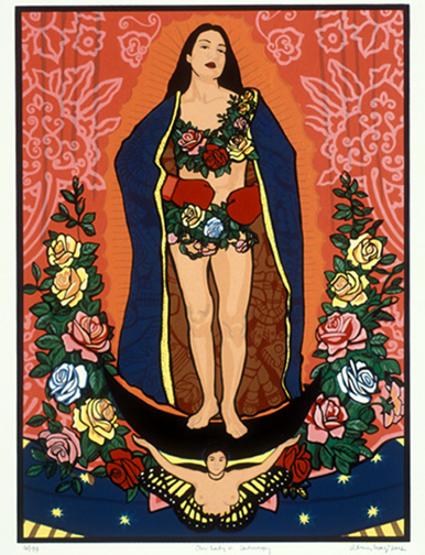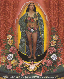 Our Lady of Controversy: Alma López's Irreverent Apparition edited by Alicia Gaspar de Alba and Alma López is 344 pages with 12 color images and 34 black & white illustrations. This book is accompanied by the 46 minute documentary DVD titled I LOVE Lupe featuring a roundtable conversation with Ester Hernández, Yolanda M. López and Alma López about their "controversial Guadalupes."