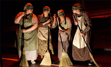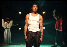 Alfaro’s Electricidad is another play adapted from the works of an ancient Greek, this times Sophocles and his play Electra. But the great part about Alfaro’s plays is that a viewer does not need to know the story on which it is based to fully appreciate the adaptation. Electricidad takes place in the barrio of East Los Angeles and Alfaro captures the atmosphere of the area perfectly, from the language (more Spanglish than Spanish) to the people who reside there. One reviewer says that while Sophocles’ original story offers structure, Alfaro gives it “substance” through the pace and spirit of the people he portrays in his script. The main theme of the play is vengeance, in which Electricidad is enraged and looks to avenge the death of her father, the king of the East Side Locos. But she is torn between the desires for revenge and redemption. The traditional part of the chorus is filled by the gossiping neighbors, as pictured above, who fill in background information and make connections between the setting of the play and society at large. The staging of the play is minimalistic, much like Oedipus El Rey but with more props and scenery. In at least one production (as staging and scenery are often left to the director) the stage had two palm trees, some timber to symbolize a house, and little else. But just as Sophocles’ original offers structure, Alfaro’s words make a minimalist staging all the more appropriate so as not to distract from his art.