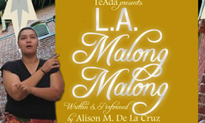 One of Alison De La Cruz’s newer solo works is LA Malong Malong. It was written and performed by the author in 2011. The performance is a queer version of Rapunzel. The play explores the question “Who would you climb a tower for?” and invites the audience to also explore the question. The main character, played by De La Cruz, is Zelle, a Princely Butch individual who knows “that she doesn’t feel at home in her own skin and she’s the one stuck in the tower.” In other words, Zelle’s body represents the tower in which the character is trapped and is waiting for something, or someone, to rescue her from the way she feels about her body. De La Cruz also expressed that a piece of this performance is inspired by—and takes part of its name from—a Southern Philippines folkdance. In this dance, the malong—a traditional tube skirt made of multi-colored cotton cloth—is able to convert into thirty different kinds of shapes and uses. This theme is used as an interesting metaphor for the gender roles and identities based on these roles. Therefore, Zelle becomes the malong in this play, in which the character changes shapes—which represent the different gender roles and identities.