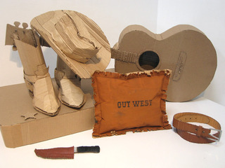 ArtSlant.com describes Phranc’s use of cardboard as “a witty observation on the artificial nature of fabricated legends and parallels the Old West's use of tall thin facades to make their buildings look more impressive” (Artslant: Calender 2011). Her skill and creativity in making the mundane fun and meaningful is truly impressive. I chose an image that incorporated a few of my favorite pieces from the exhibit: the guitar, the belt, and of course, no Cardboard Cobbler show is complete without a great pair of shoes, or in this case boots!
