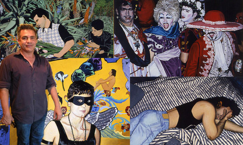 Joey Terrill was born and raised in Los Angeles as a second generation Mexican American whose art reflects a coming together of his Chicano and queer identity. Even though at times these two identities can conflict with one another Terrill is able to bring them together in interesting ways. Terrill went to Immaculate Heart College from 1973-76 and then to Cal State LA in 2002-04. He has been involved in grass roots political AIDS activism for over 20 years. He was first diagnosed with HIV at the age of 25 and talks about the effects of long term use of HIV medications which is represented in his art work.